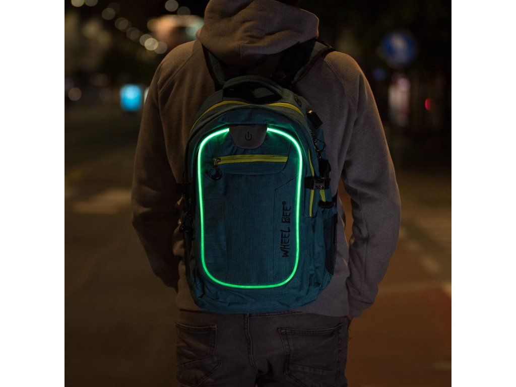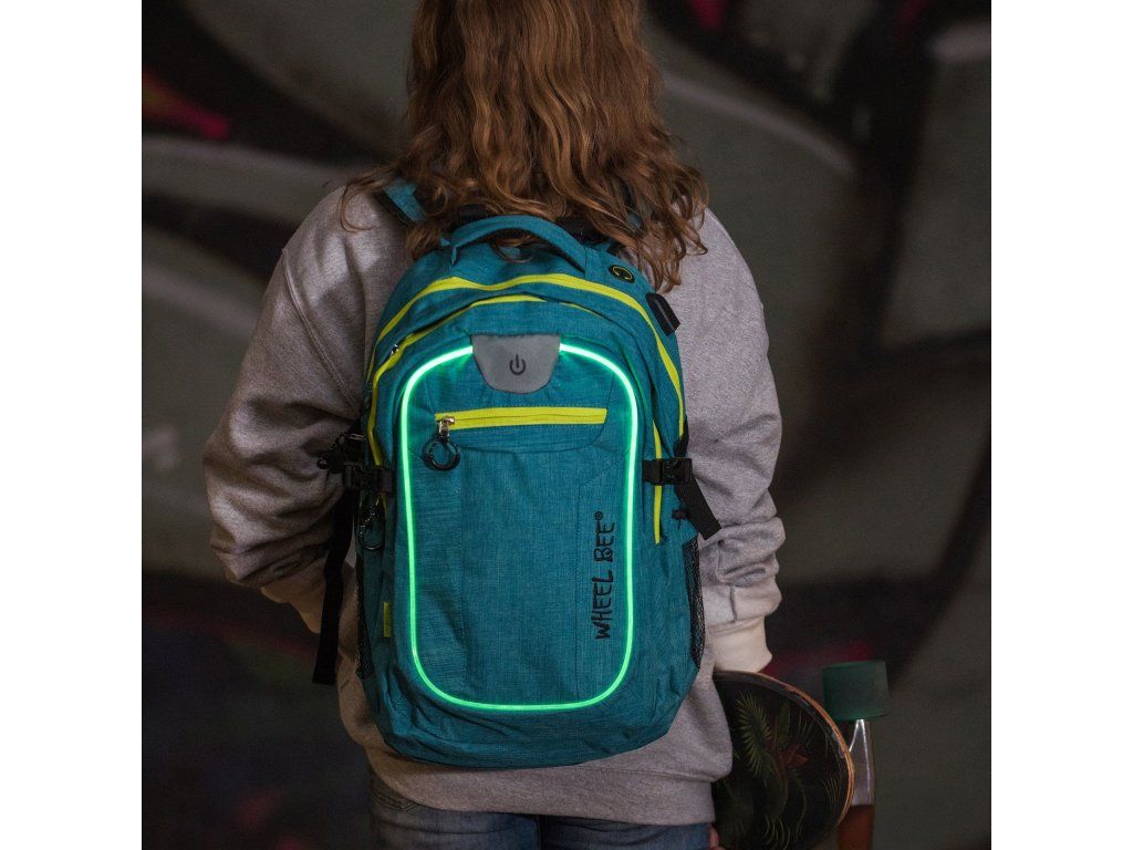 Wheel-Bee – školský a voľnočasový batoh s LED osvetlením – Revolution – tyrkysová