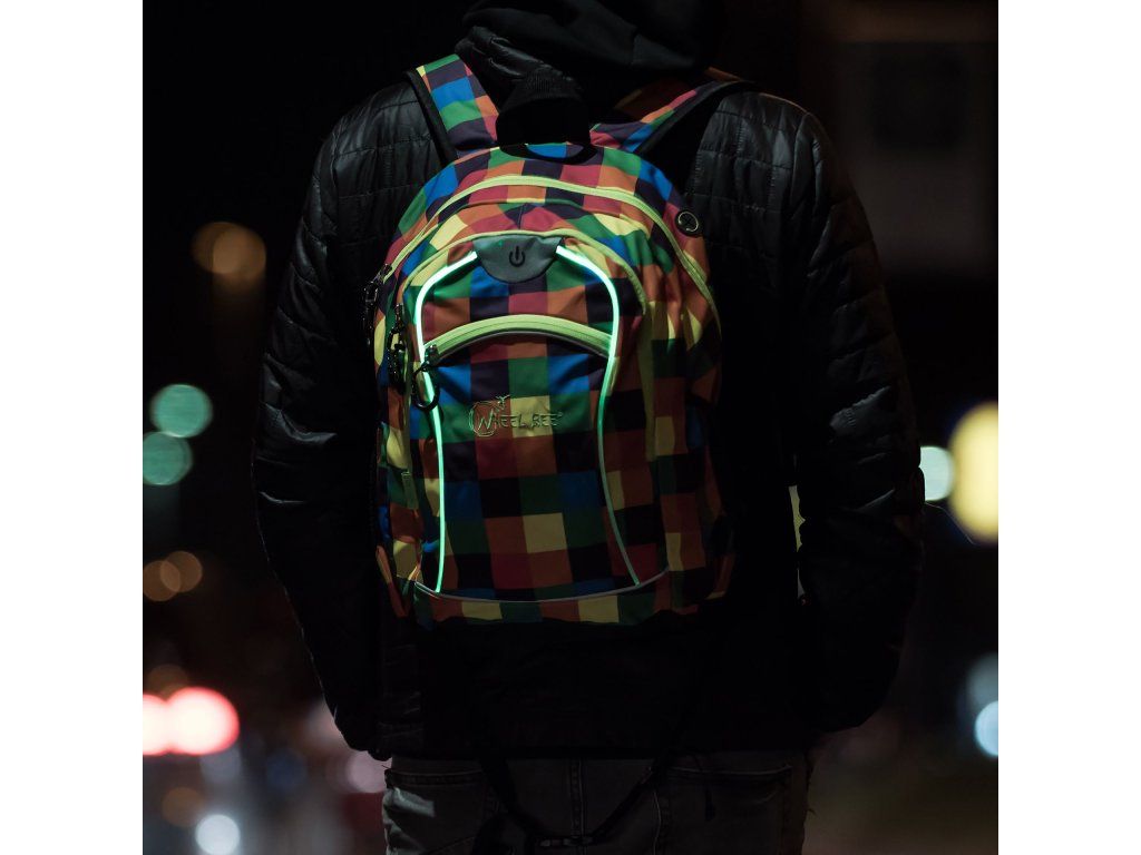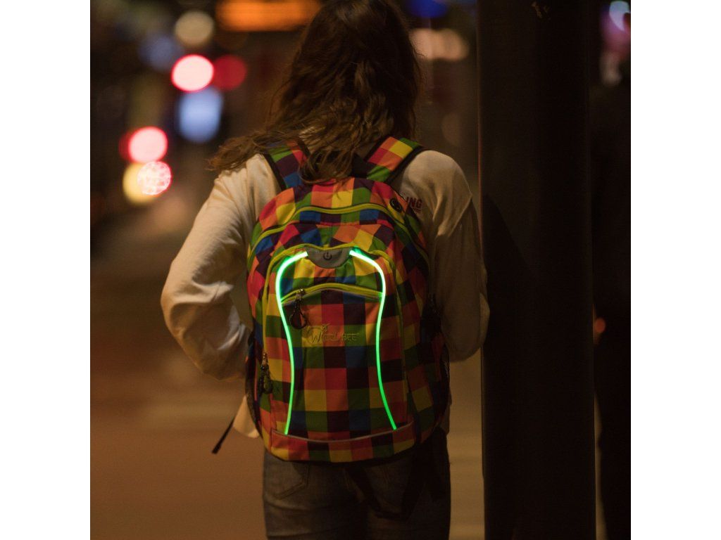 Wheel-Bee – voľnočasový batoh s LED technológiou – Night Vision, oranžová/modrá/zelená